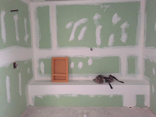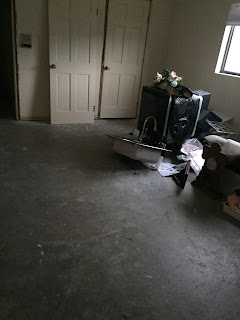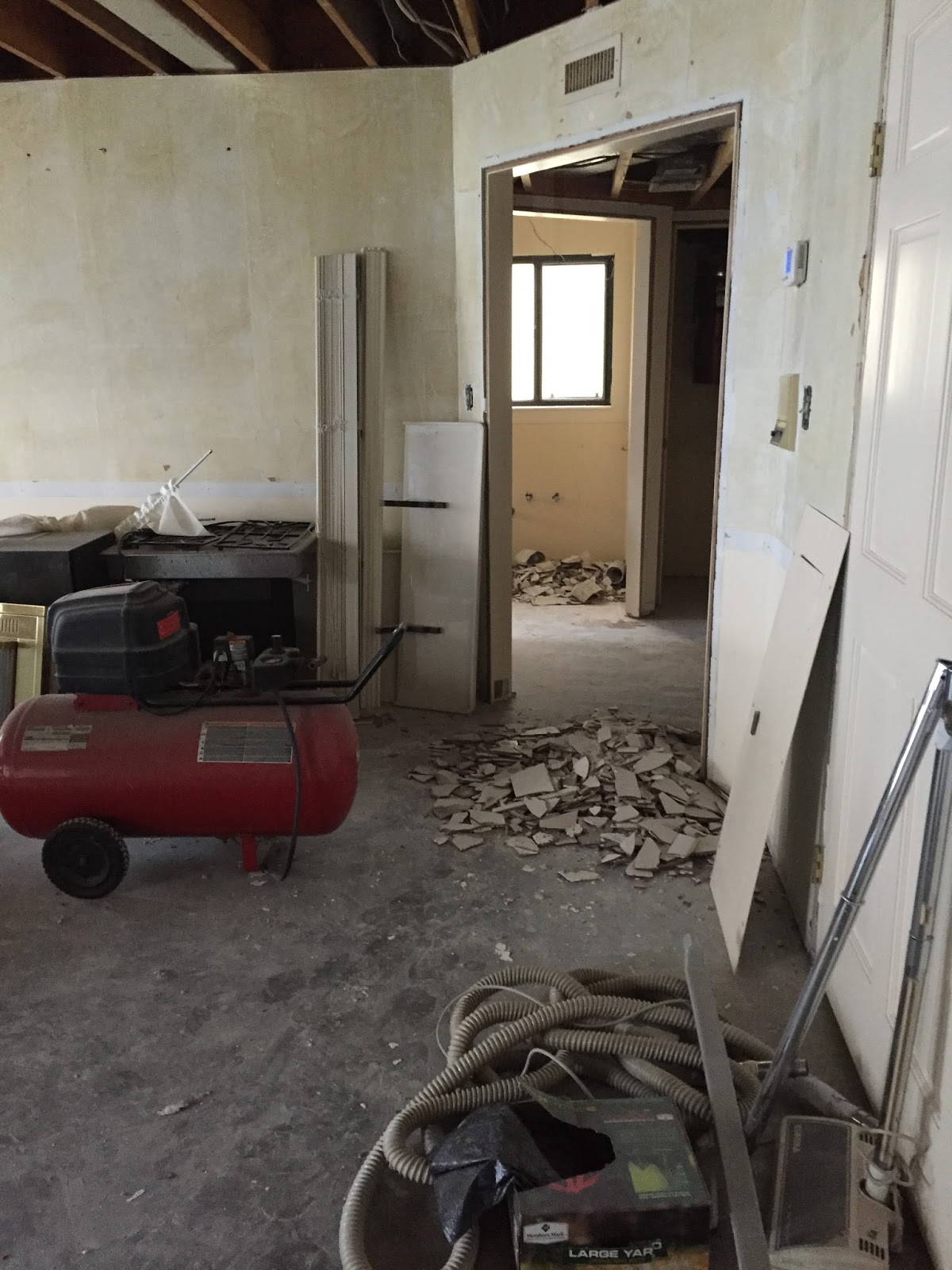Our friend and general contractor, Mark and Russell talking about what was happening in the laundry room. Just a small start to total demolition. They are looking at a FRYER that my FIL had put in (I never knew it was there) and discussing how to save it.....I nixed that idea. Who though having a fish fryer where you wash clothes was a good idea?