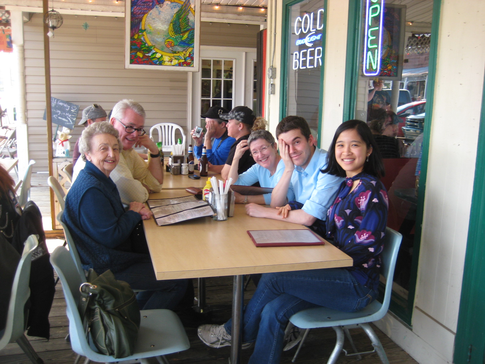 Above are Russell's mama, BIL, SIL, their son Sam and his fiance Shan.  In this very small and VERY crowded cafe there was one waitress who was every bit of 16 years old and so frustrated she was nearly in tears.  We were very patient and waited over an hour for our food. Now BIL Johnny was a good sport even though he wasn't feeling the patience.